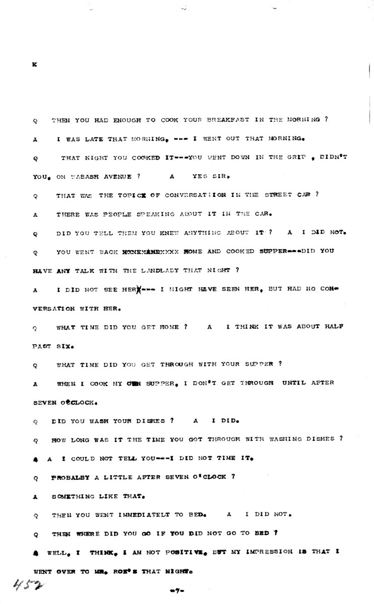 Testimony of Harry L. Gilmer (first appearance) Volume K, Page 452 Higher Quality Image (94K) | Previous Image | Next Image Return to Text | Return to Trial TOC | Return to the HADC Table of Contents