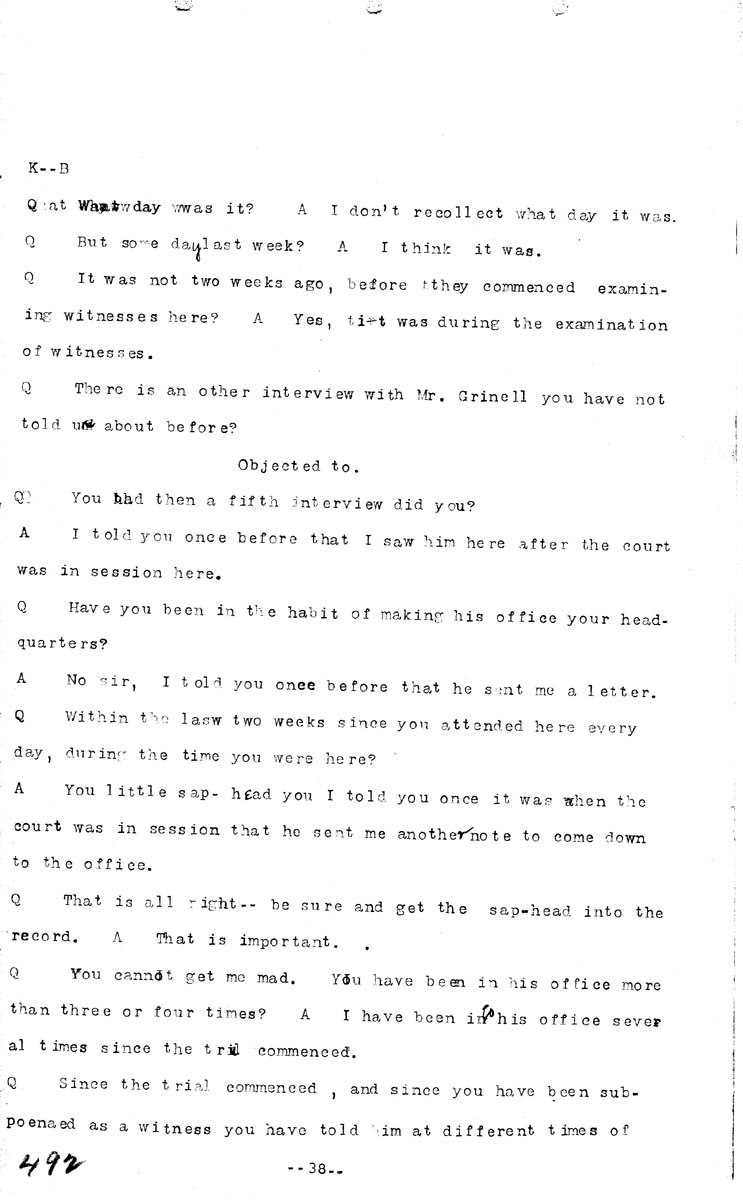 Testimony of Harry L. Gilmer (first appearance) Volume K, Page 492 Higher Quality Image (103K) | Previous Image | Next Image Return to Text | Return to Trial TOC | Return to the HADC Table of Contents