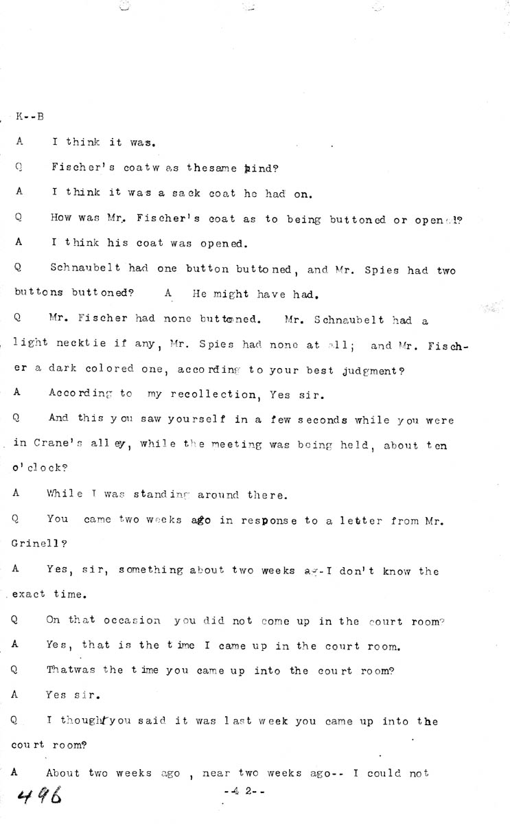 Testimony of Harry L. Gilmer (first appearance) Volume K, Page 496 Higher Quality Image (98K) | Previous Image | Next Image Return to Text | Return to Trial TOC | Return to the HADC Table of Contents