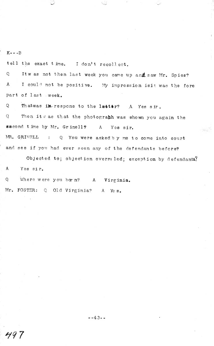 Testimony of Harry L. Gilmer (first appearance) Volume K, Page 497 Higher Quality Image (60K) | Previous Image | Next Image Return to Text | Return to Trial TOC | Return to the HADC Table of Contents