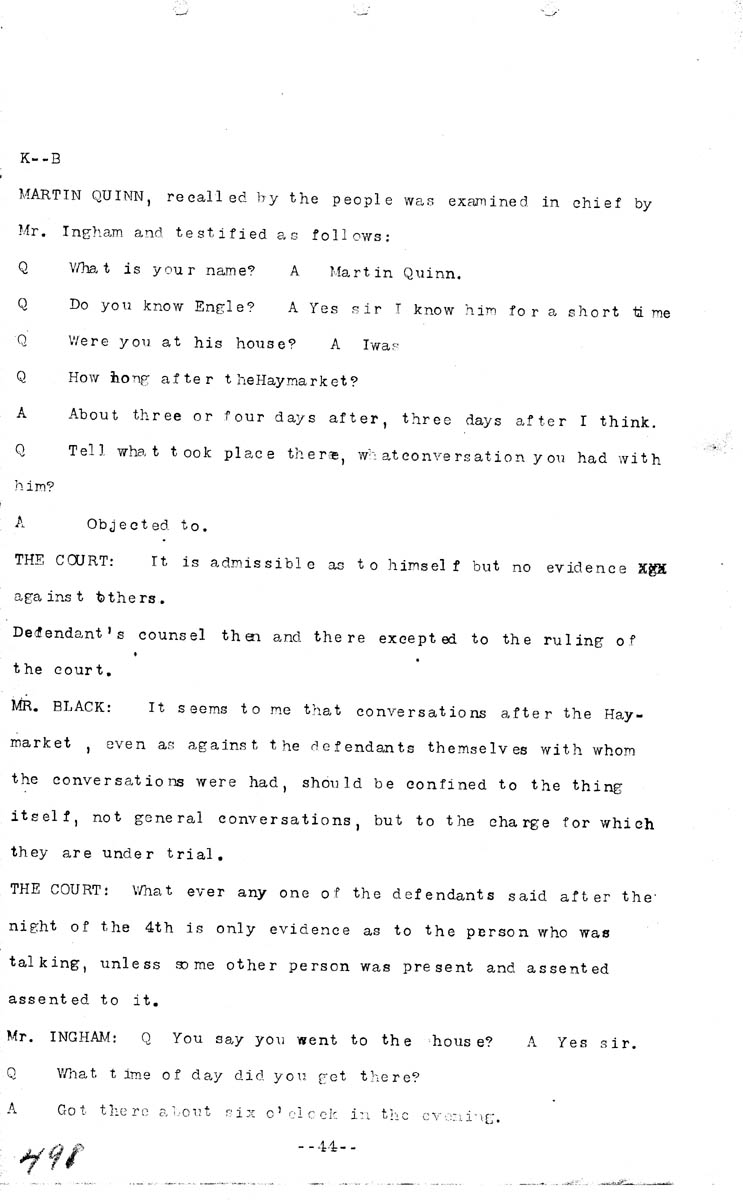 Testimony of Martin Quinn (second appearance) Volume K, Page 498