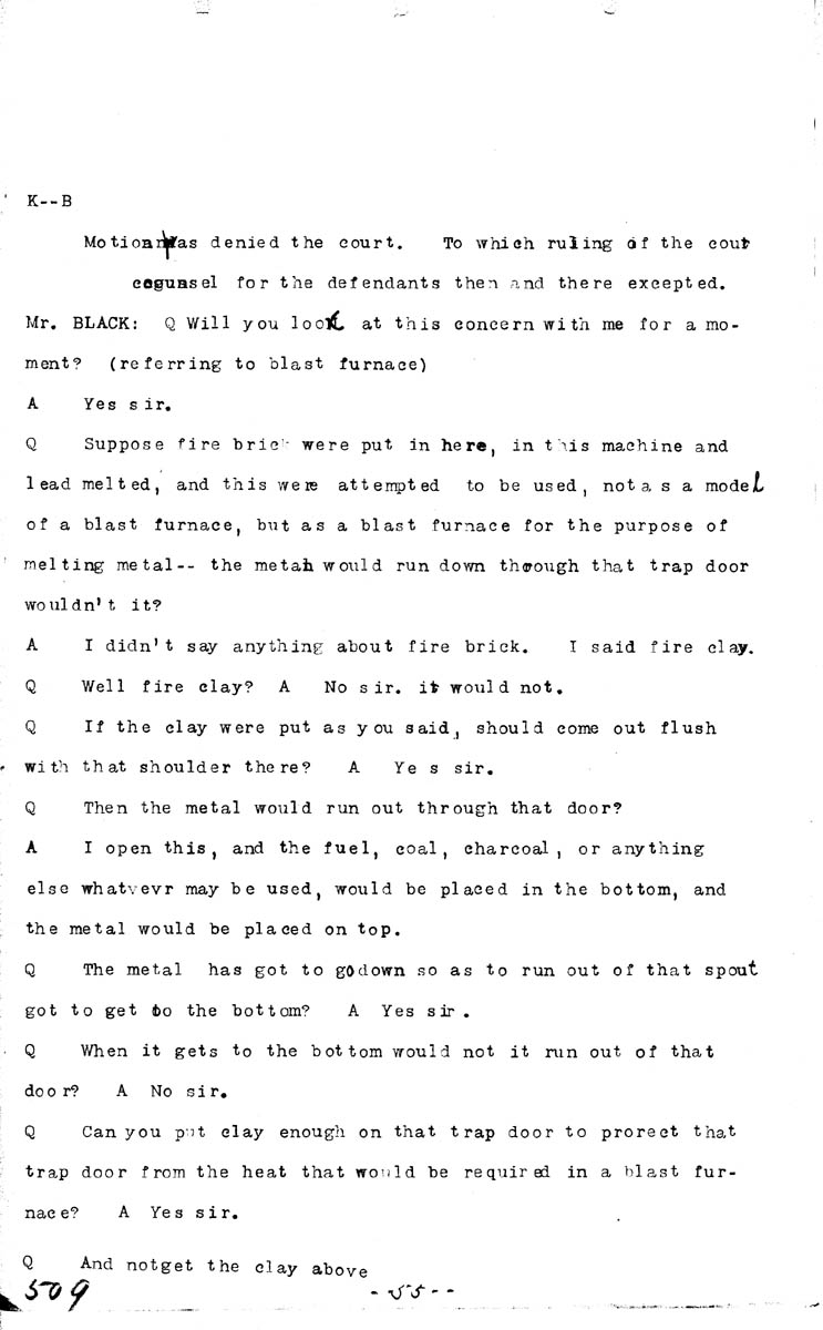 Testimony of John Bonfield (second appearance) Volume K, Page 509 Higher Quality Image (111K) | Previous Image | Next Image Return to Text | Return to Trial TOC | Return to the HADC Table of Contents