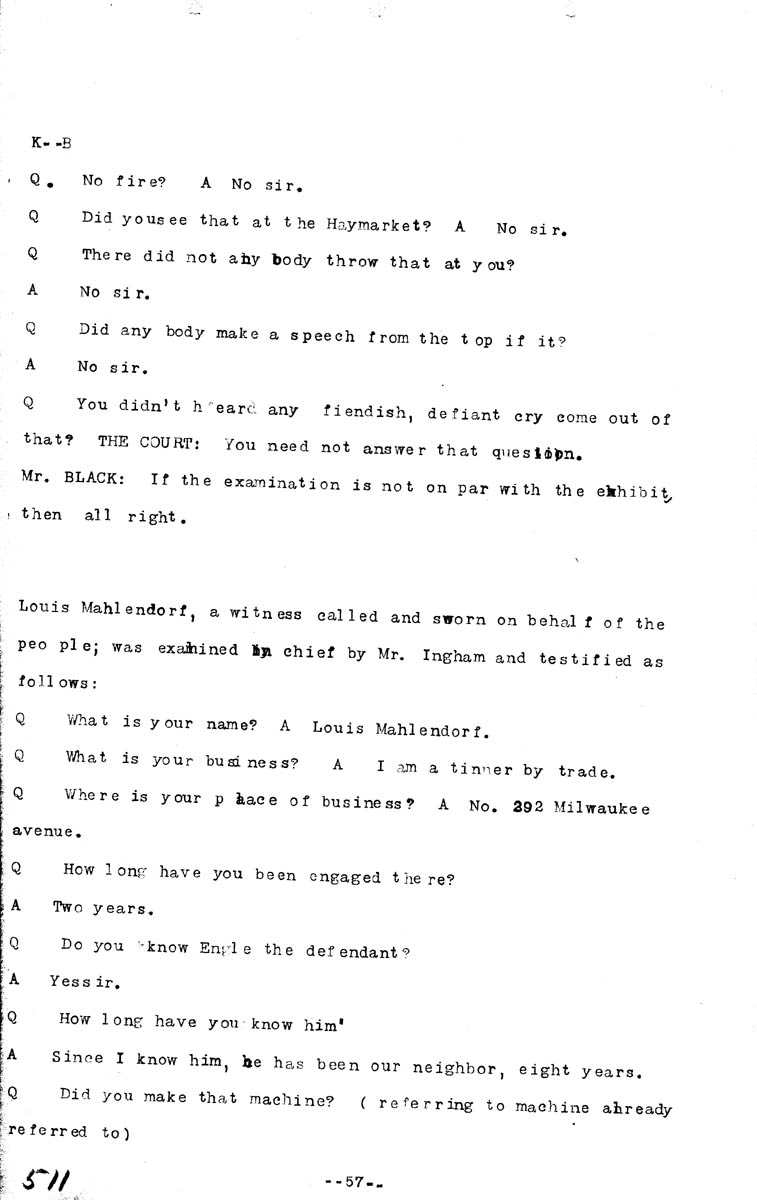 Testimony of John Bonfield (second appearance) Testimony of Louis Mahlendorf Volume K, Page 511 Higher Quality Image (91K) | Previous Image | Next Image Return to Bonfield testimony | Return to Mahlendorf testimony | Return to Trial TOC | Return to the HADC Table of Contents