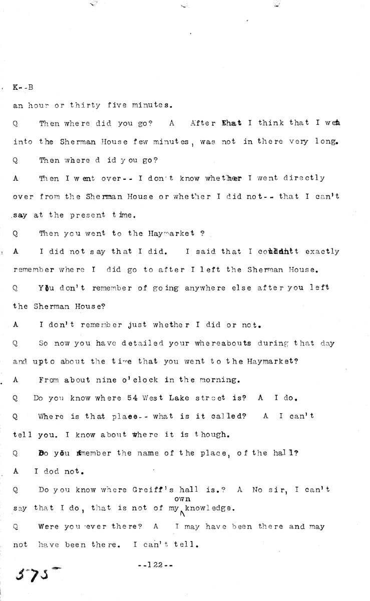 Testimony of Malvern M. Thompson (second appearance) Volume K, Page 575 Higher Quality Image (101K) | Previous Image | Next Image Return to Text | Return to Trial TOC | Return to the HADC Table of Contents