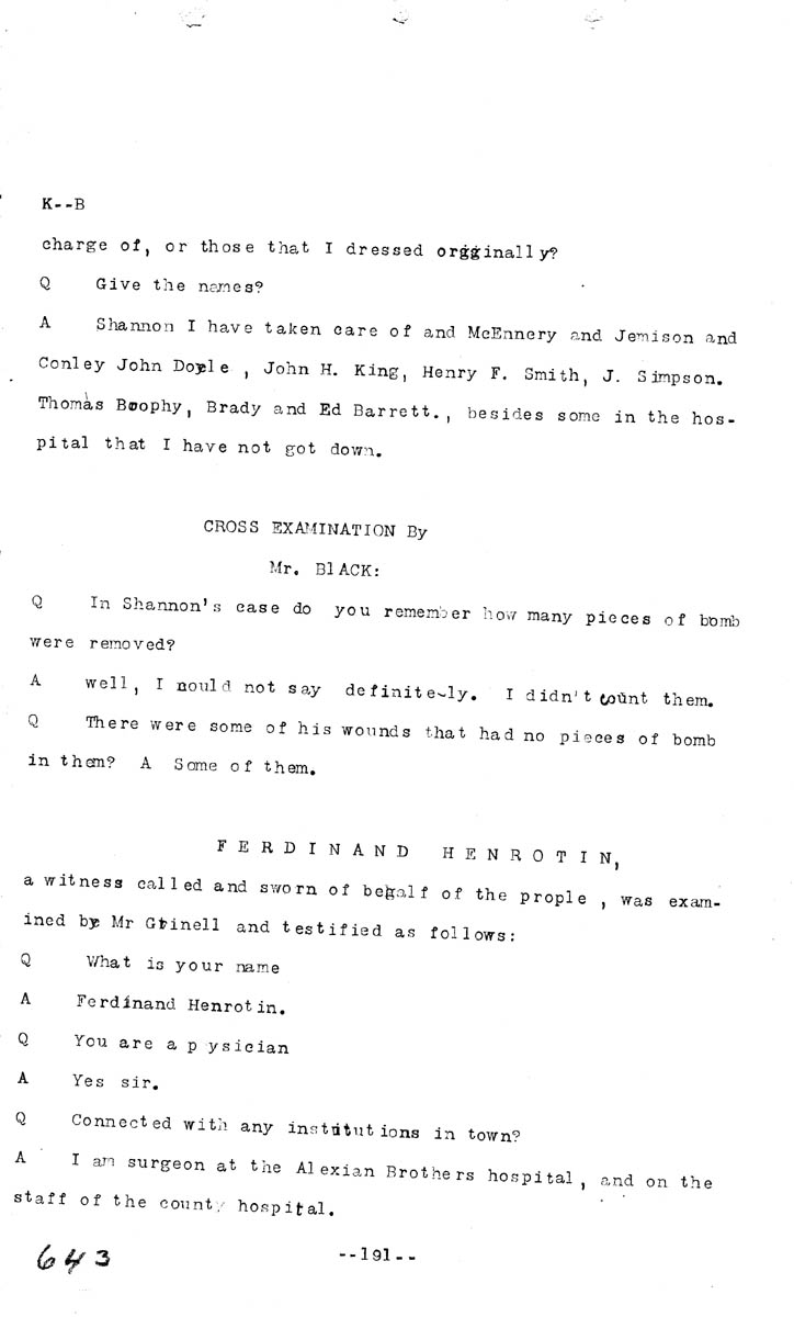 Testimony of Edward W. LeeTestimony of Ferdinand Henroten Volume K, Page 643