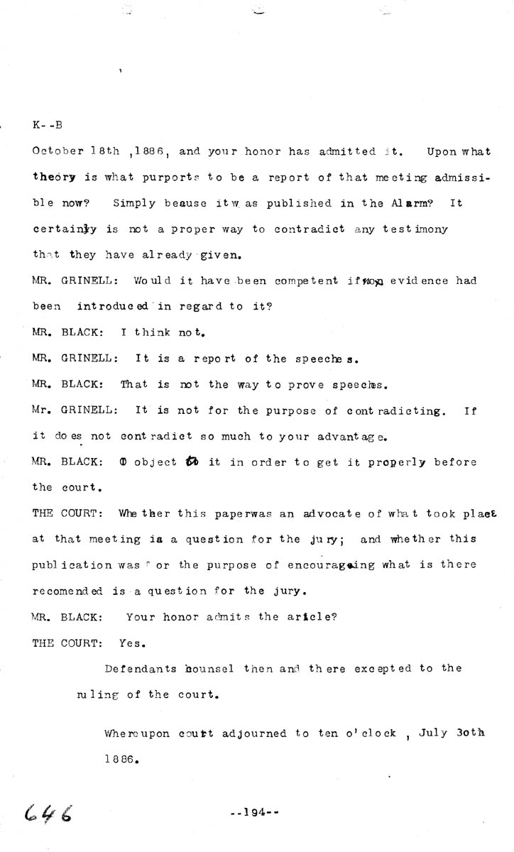 Introduction of Evidence Volume K, Page 646 Higher Quality Image (96K) | Previous Image | Next Image Return to Text | Return to Trial TOC | Return to the HADC Table of Contents