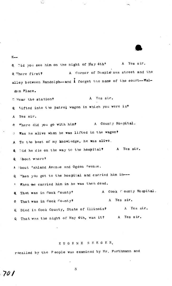 Testimony of Michael BurnsTestimony of Eugene Seeger (fifth appearance) Introduction of Evidence Volume K, Page 701 Higher Quality Image (78K) | Previous Image | Next Image Return to Burns testimony | Return to Seeger testimony | Return to Trial TOC | Return to the HADC Table of Contents