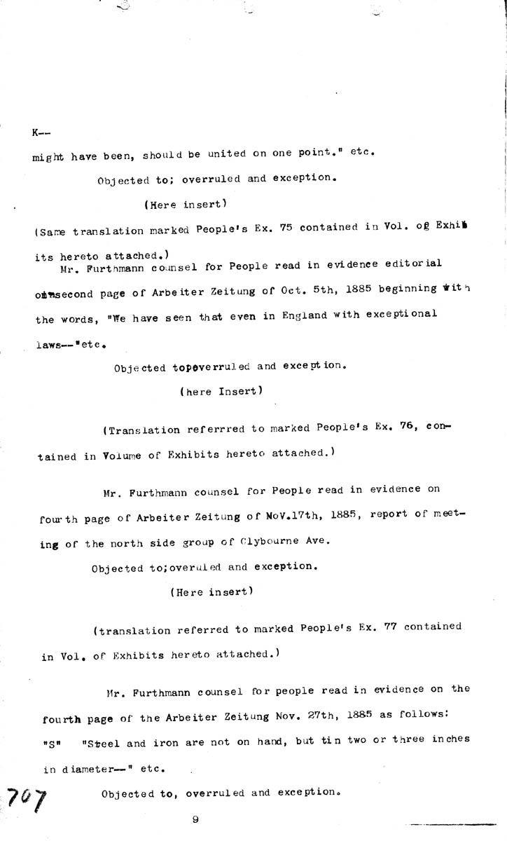Testimony of Eugene Seeger (fifth appearance) Introduction of Evidence Volume K, Page 707 Higher Quality Image (94K) | Previous Image | Next Image Return to Text | Return to Trial TOC | Return to the HADC Table of Contents