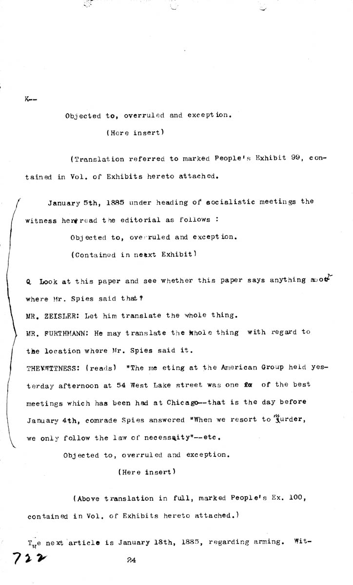 Testimony of E. F. L. Gauss (second appearance) Introduction of Evidence Volume K, Page 722 Higher Quality Image (95K) | Previous Image | Next Image Return to Text | Return to Trial TOC | Return to the HADC Table of Contents