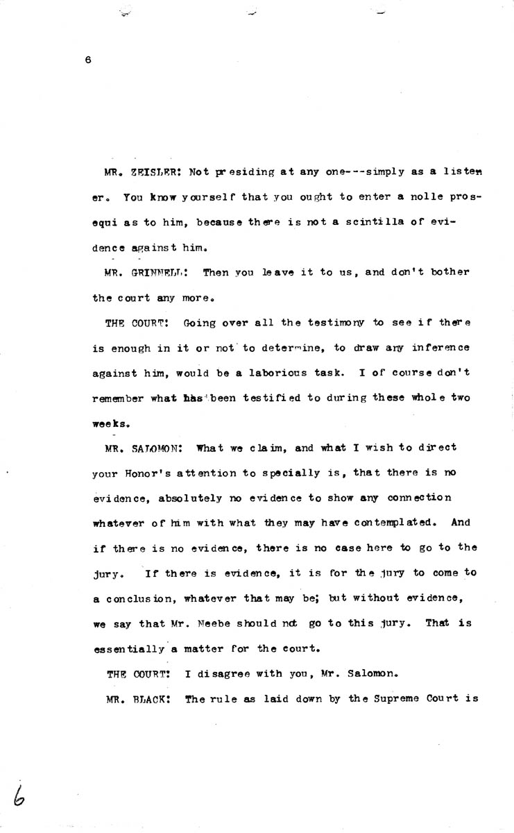 Court Discussion - Motion to dismiss charges against Oscar Neebe Volume L, Page 6 Higher Quality Image (96K) | Previous Image | Next Image Return to Text | Return to Trial TOC | Return to the HADC Table of Contents