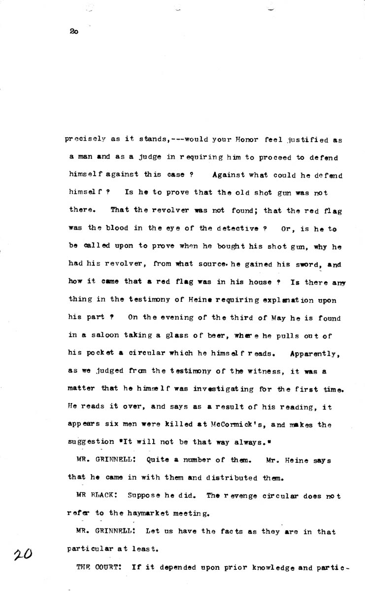 Court Discussion - Motion to dismiss charges against Oscar Neebe Volume L, Page 20 Higher Quality Image (114K) | Previous Image | Next Image Return to Text | Return to Trial TOC | Return to the HADC Table of Contents