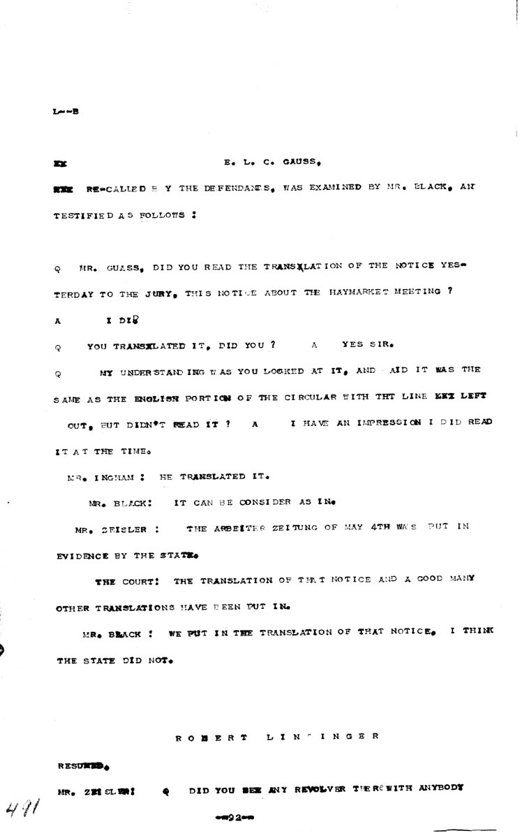 Testimony of E. F. L. Gauss (third appearance) Testimony of Robert Lindinger (first appearance resumed) Volume L, Page 491