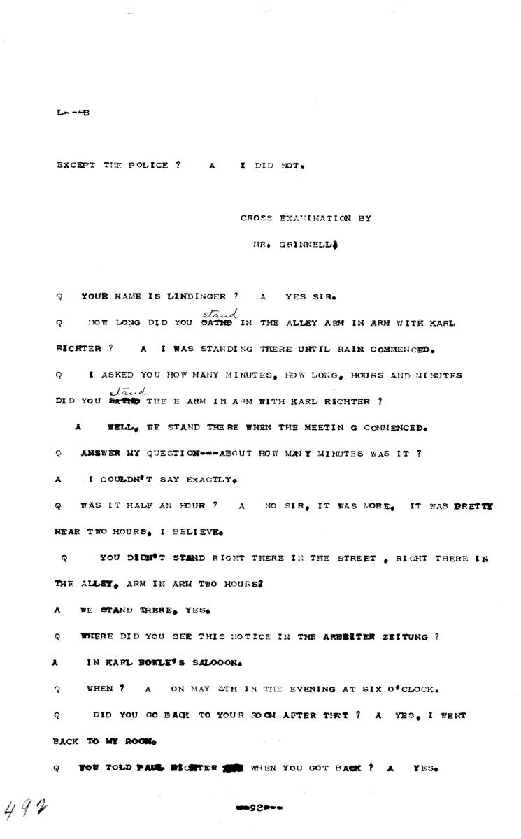 Testimony of Robert Lindinger (first appearance resumed) Volume L, Page 492 Higher Quality Image (80K) | Previous Image | Next Image Return to Text | Return to Trial TOC | Return to the HADC Table of Contents