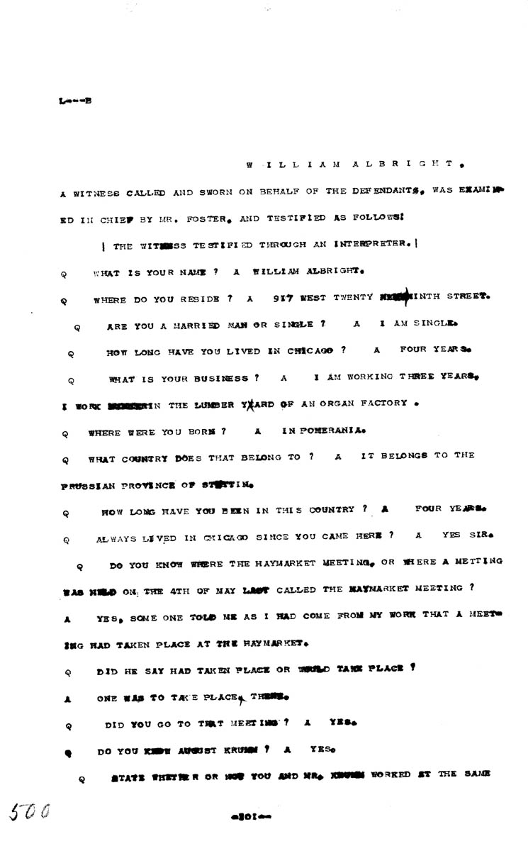Testimony of William Albright Volume L, Page 500