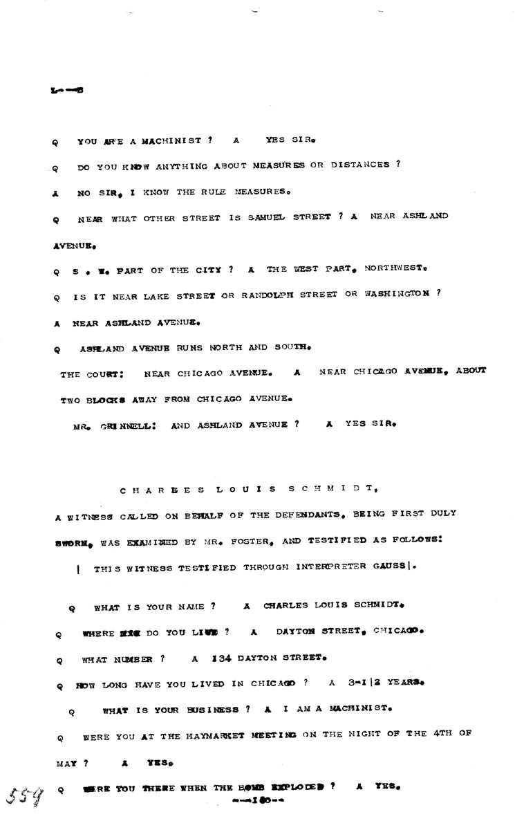 Testimony of Charles Heiderkrueger Testimony of Charles Louis Schmidt Volume L, Page 559