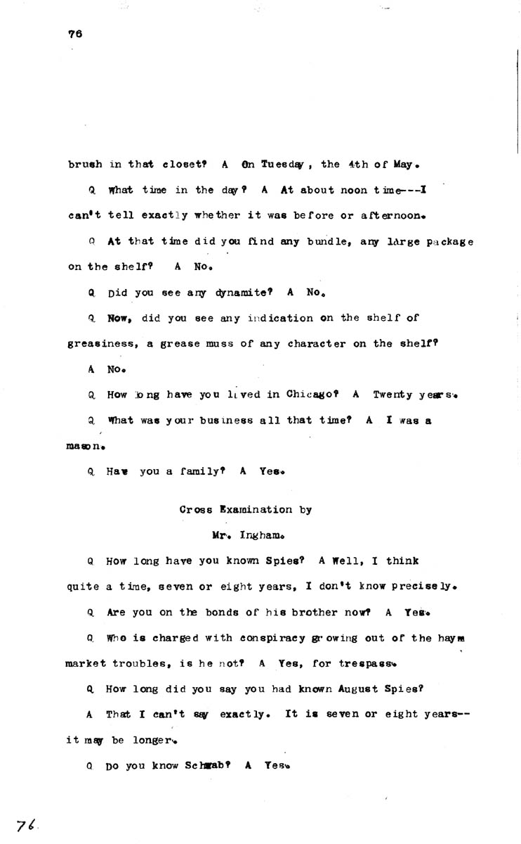 Testimony of Henry Lindemeyer (first appearance) Volume M, Page 76 Higher Quality Image (85K) | Previous Image | Next Image Return to Text | Return to Trial TOC | Return to the HADC Table of Contents
