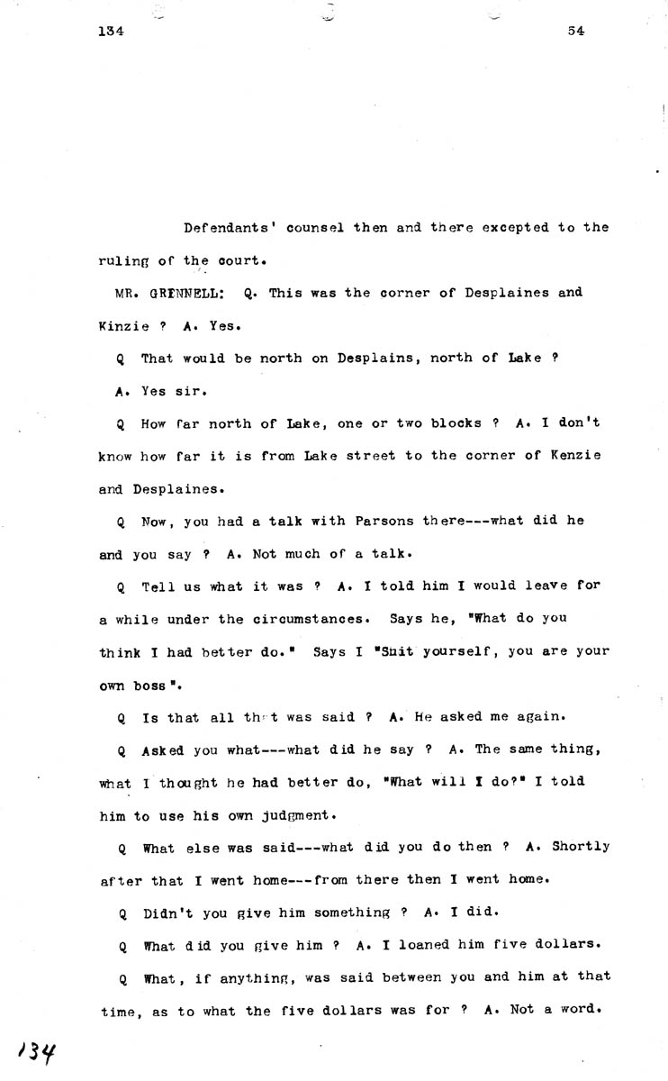 Testimony of Thomas Brown Volume M, Page 134 Higher Quality Image (96K) | Previous Image | Next Image Return to Text | Return to Trial TOC | Return to the HADC Table of Contents