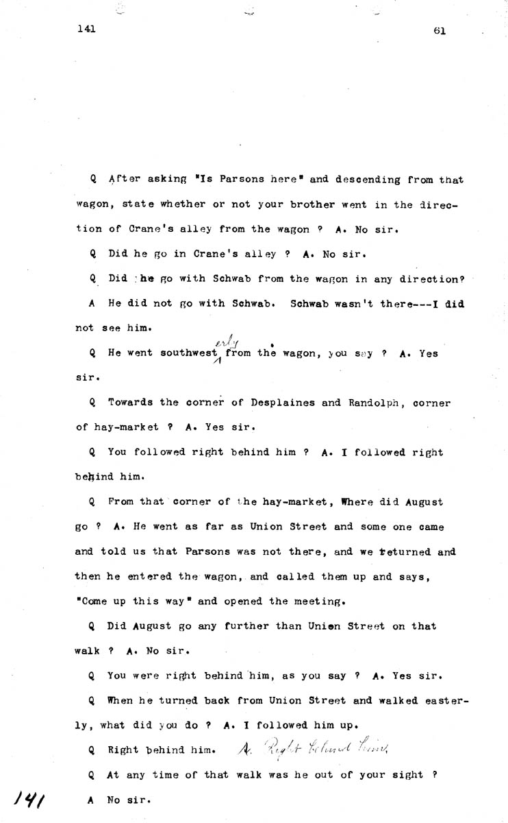 Testimony of Henry Spies (first appearance) Volume M, Page 141