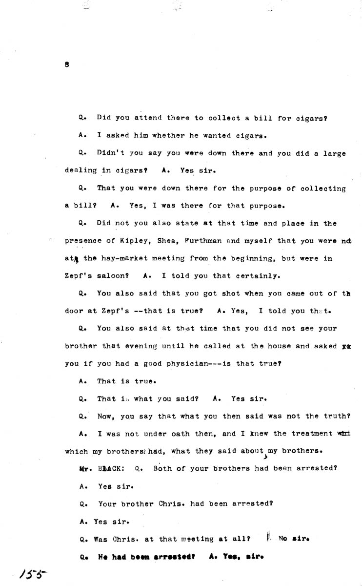 Testimony of Henry Spies (first appearance) Volume M, Page 155 Higher Quality Image (105K) | Previous Image | Next Image Return to Text | Return to Trial TOC | Return to the HADC Table of Contents