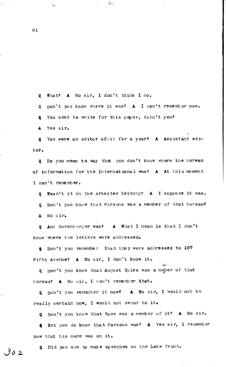 Testimony of Lizzie Mae Holmes Volume M, Page 302 Higher Quality Image (88K) | Previous Image | Next Image Return to Text | Return to Trial TOC | Return to the HADC Table of Contents