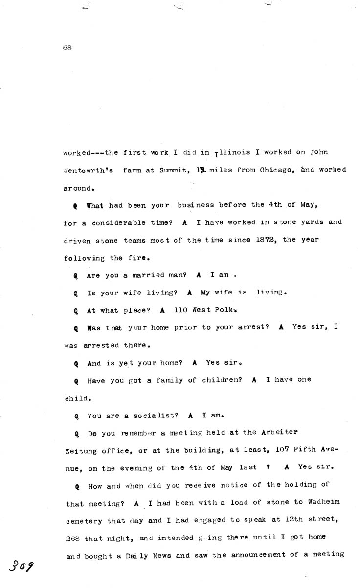 Testimony of Samuel Fielden (first appearance) Volume M, Page 309