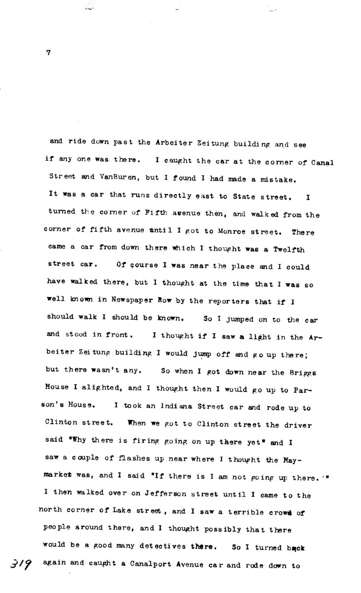 Testimony of Samuel Fielden (first appearance) Volume M, Page 319