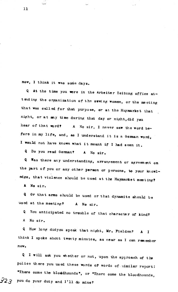 Testimony of Samuel Fielden (first appearance) Volume M, Page 323