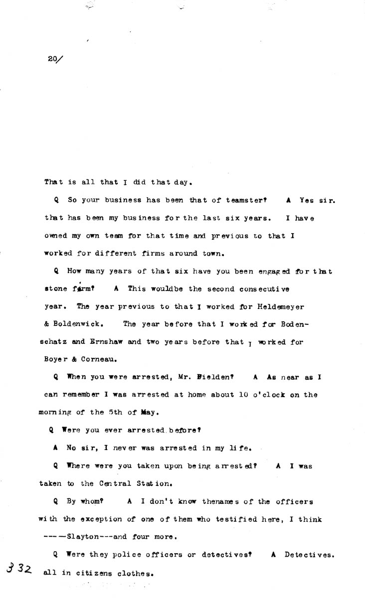 Testimony of Samuel Fielden (first appearance) Volume M, Page 332