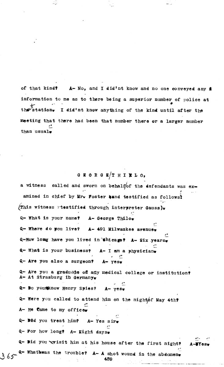 Testimony of Samuel Fielden (first appearance resumed)Testimony of George Thilo Volume M, Page 365