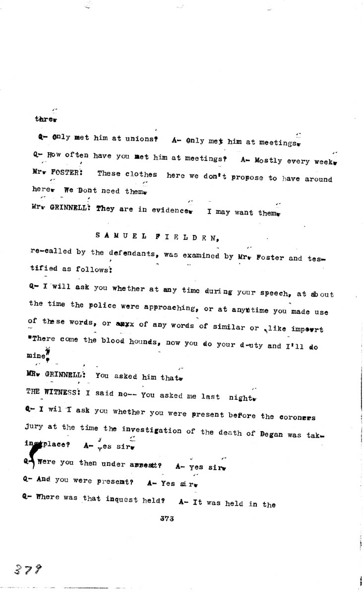 Testimony of Jacob ShermanTestimony of Samuel Fielden (second appearance) Volume M, Page 379