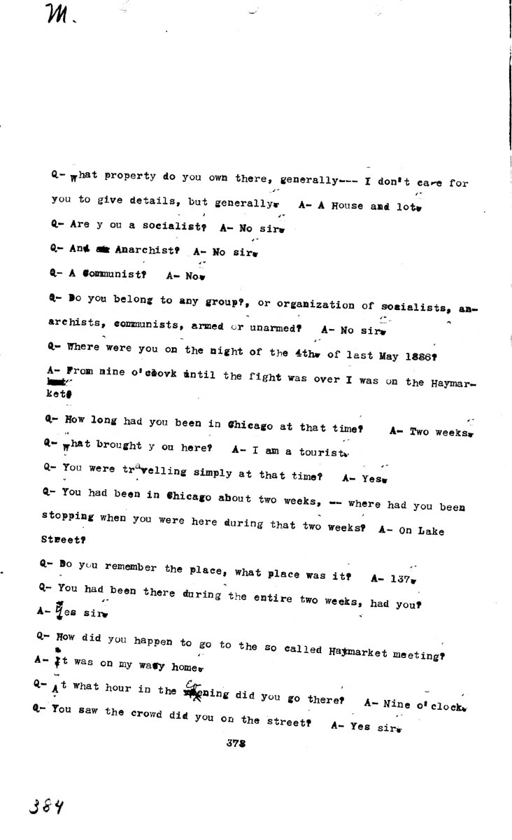 Testimony of Henry Schultz Volume M, Page 384 Higher Quality Image (98K) | Previous Image | Next Image Return to Text | Return to Trial TOC | Return to the HADC Table of Contents