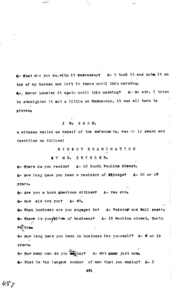 Testimony of Sleeper T. IngramTestimony of J. W. Gage Volume M, Page 487 Higher Quality Image (83K) | Previous Image | Next Image Return to Ingram testimony | Return to Gage testimony | Return to Trial TOC | Return to the HADC Table of Contents