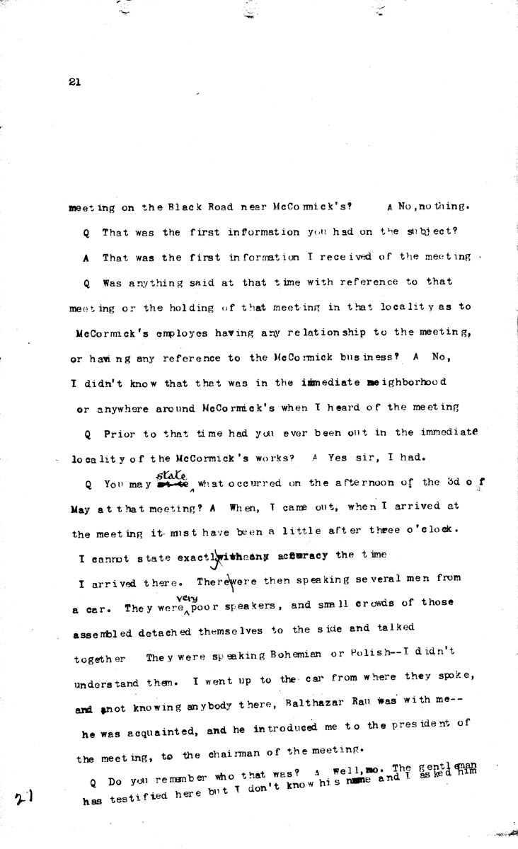 Testimony of August Spies Volume N, Page 21