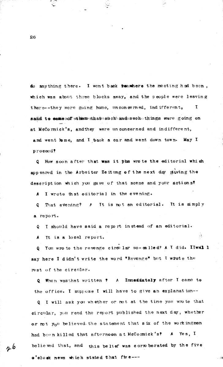 Testimony of August Spies Volume N, Page 26 Higher Quality Image (106K) | Previous Image | Next Image Return to Text | Return to Trial TOC | Return to the HADC Table of Contents