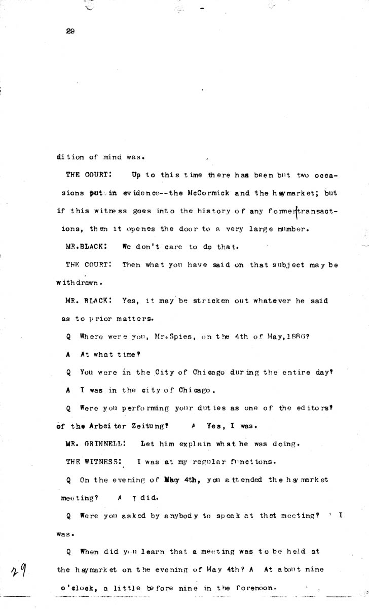 Testimony of August Spies Volume N, Page 29