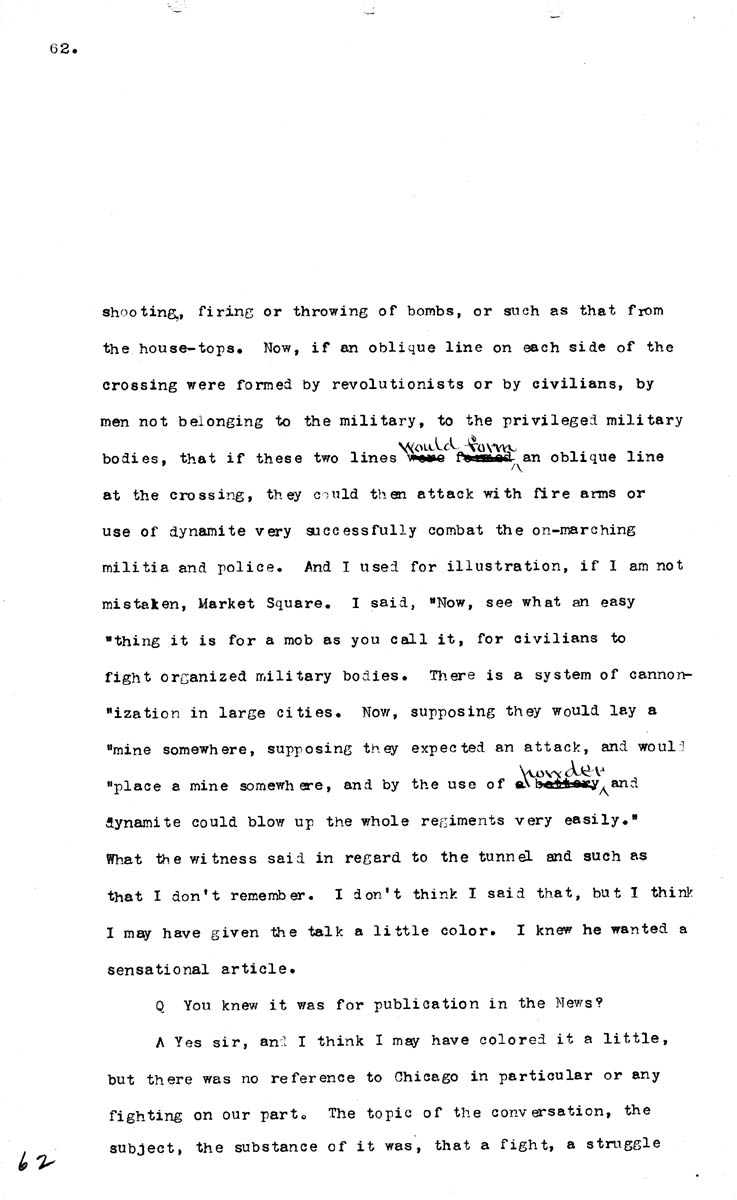 Testimony of August Spies Volume N, Page 62