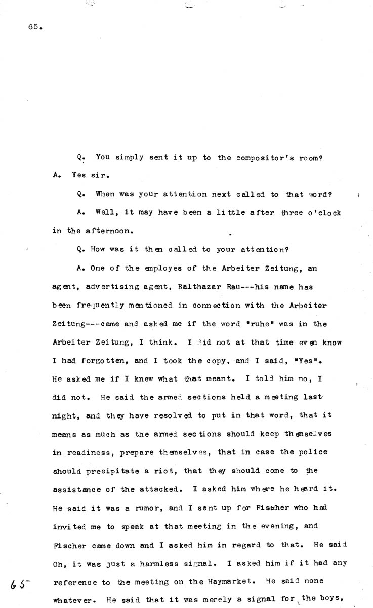 Testimony of August Spies Volume N, Page 65