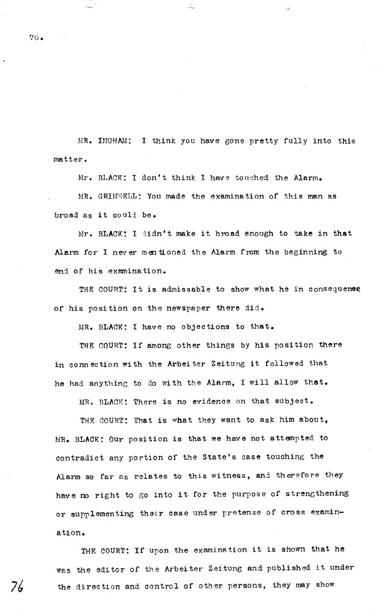 Testimony of August Spies Volume N, Page 76 Higher Quality Image (103K) | Previous Image | Next Image Return to Text | Return to Trial TOC | Return to the HADC Table of Contents