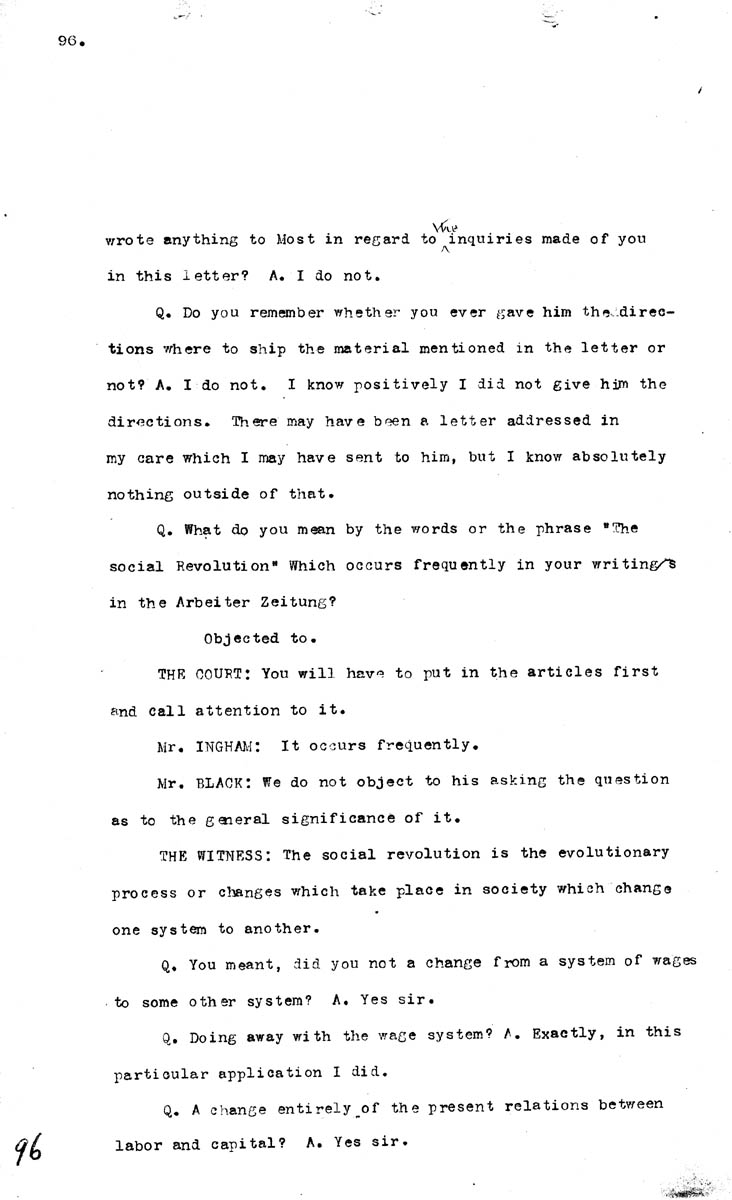 Testimony of August Spies Volume N, Page 96