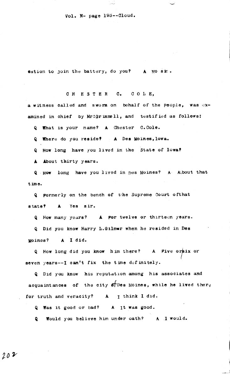 Testimony of Benjamin F. KnowlesTestimony of Chester C. Cole Volume N, Page 202