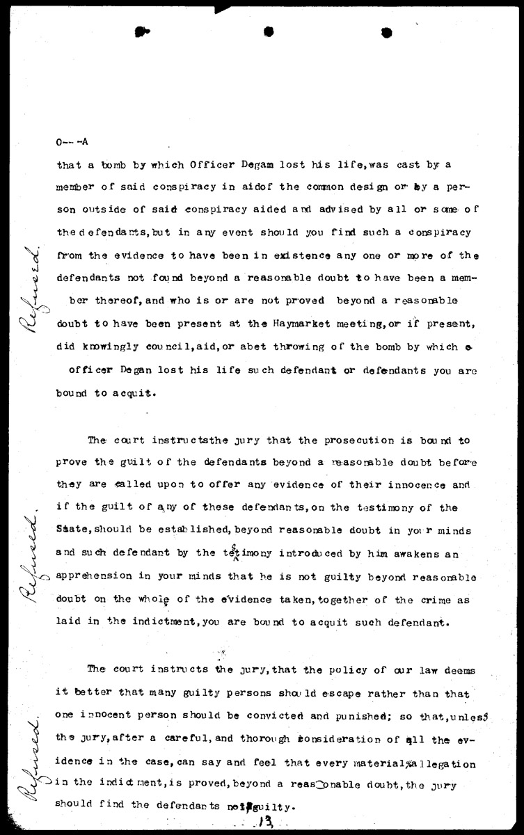 Defendants' instructions to the jury: refused by the court Volume O, Page 13 Higher Quality Image (205K) | Previous Image | Next Image Return to Text | Return to Trial TOC | Return to the HADC Table of Contents