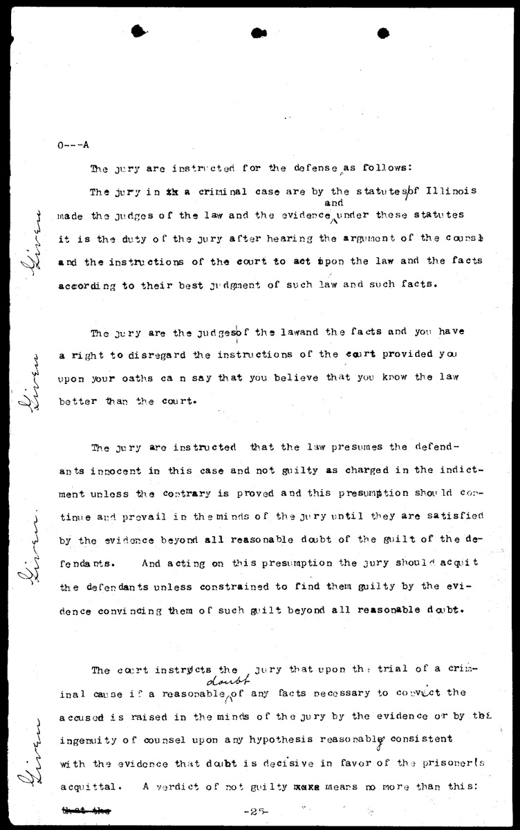 Court's instructions to the jury on behalf of the defendants Volume O, Page 25 Higher Quality Image (180K) | Previous Image | Next Image Return to Text | Return to Trial TOC | Return to the HADC Table of Contents