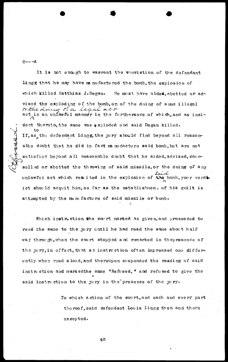 Louis Lingg's instructions to the jury on his behalf: refused by the court Volume O, Page 40
