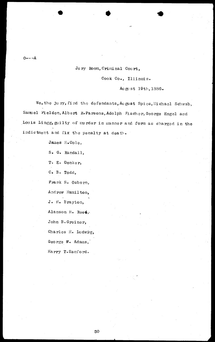 The verdict Volume O, Page 50 Higher Quality Image (78K) | Previous Image | Next Image Return to Text | Return to Trial TOC | Return to the HADC Table of Contents
