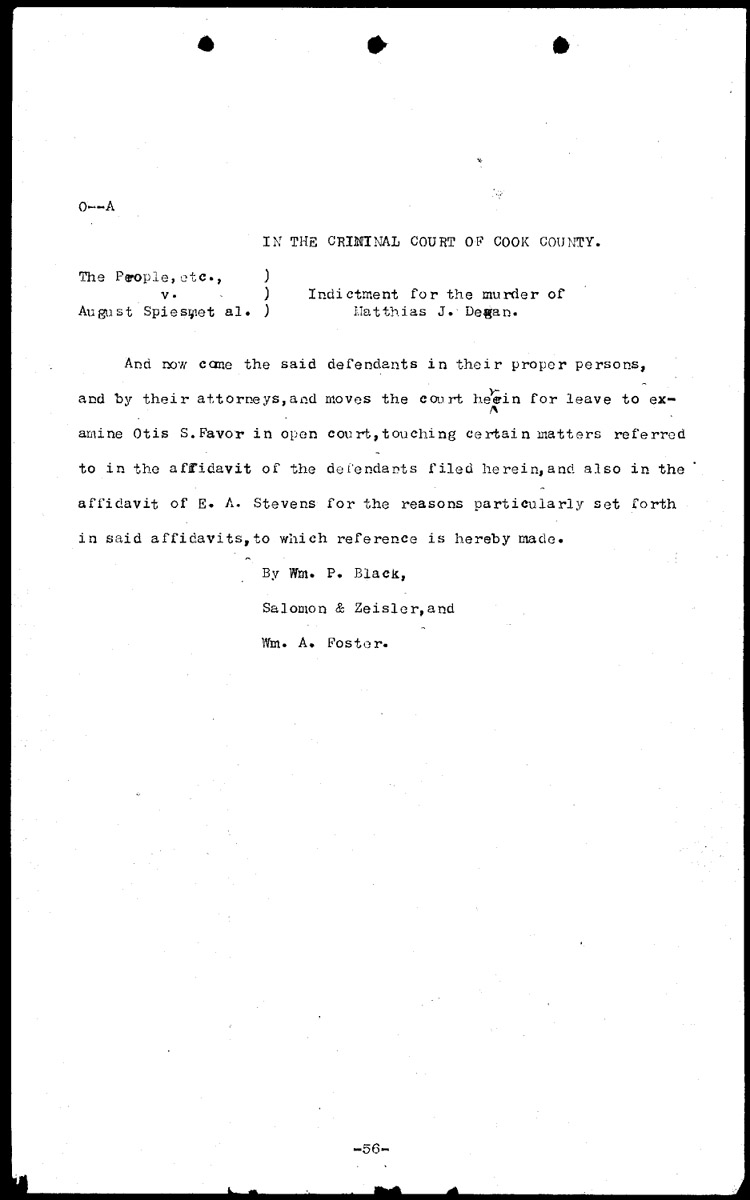 Affidavits of the defendants and E. A. Stevens: court discourse Volume O, Page 56 Higher Quality Image (89K) | Previous Image | Next Image Return to Text | Return to Trial TOC | Return to the HADC Table of Contents