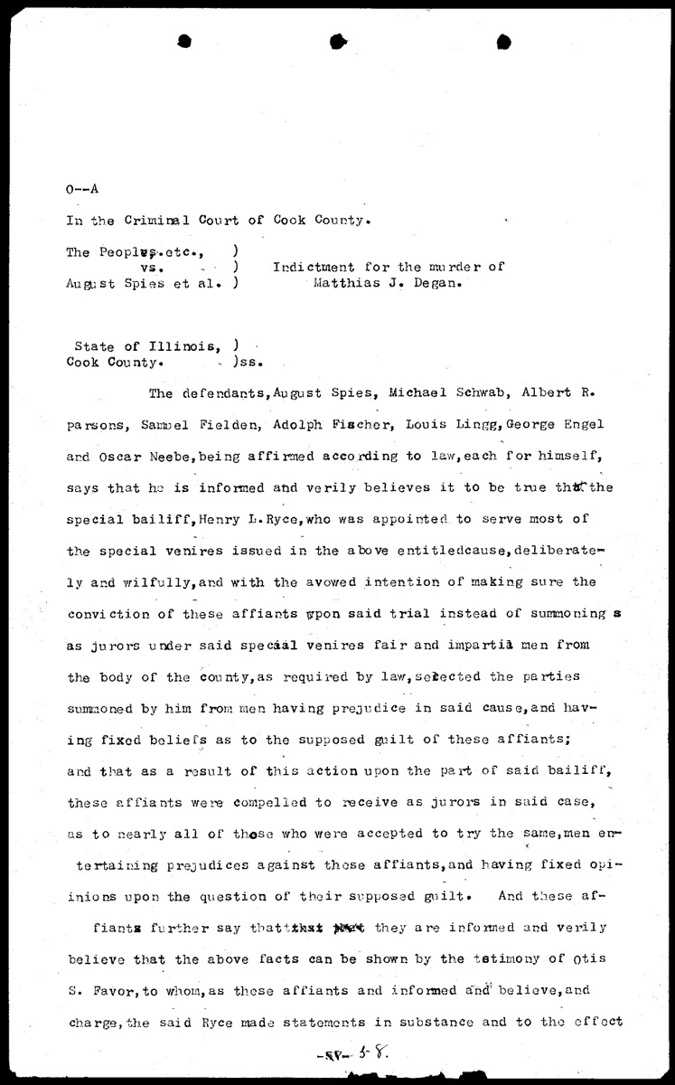 Affidavits of the defendants and E. A. Stevens: court discourse Volume O, Page 58 Higher Quality Image (179K) | Previous Image | Next Image Return to Text | Return to Trial TOC | Return to the HADC Table of Contents