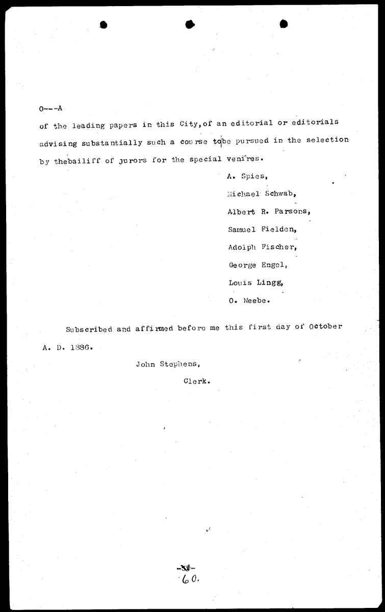 Affidavits of the defendants and E. A. Stevens: court discourse Volume O, Page 60 Higher Quality Image (70K) | Previous Image | Next Image Return to Text | Return to Trial TOC | Return to the HADC Table of Contents