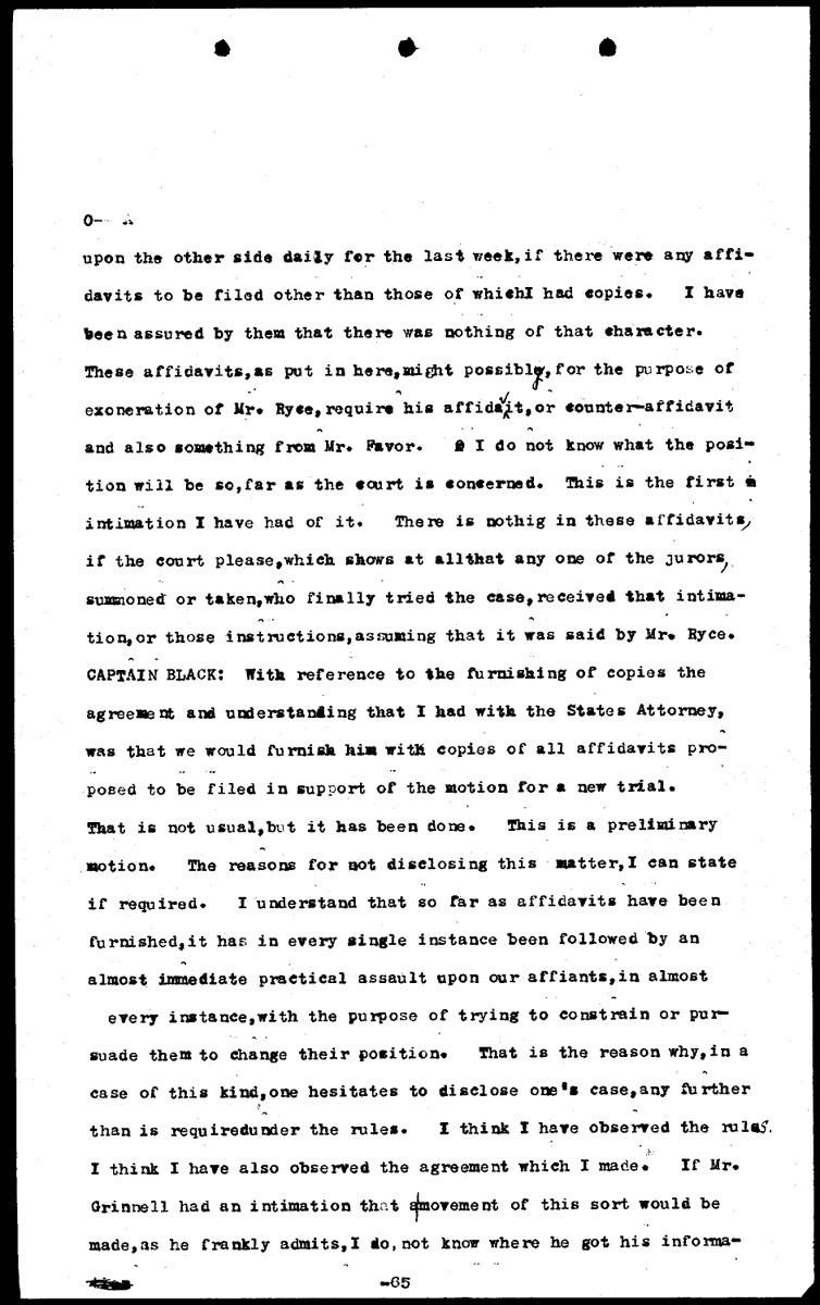 Affidavits of the defendants and E. A. Stevens: court discourse Volume O, Page 65 Higher Quality Image (213K) | Previous Image | Next Image Return to Text | Return to Trial TOC | Return to the HADC Table of Contents