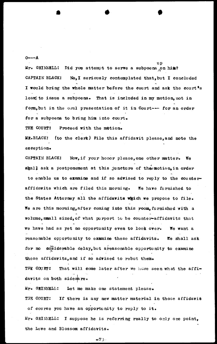 Affidavits of the defendants and E. A. Stevens: court discourse Volume O, Page 72 Higher Quality Image (181K) | Previous Image | Next Image Return to Text | Return to Trial TOC | Return to the HADC Table of Contents