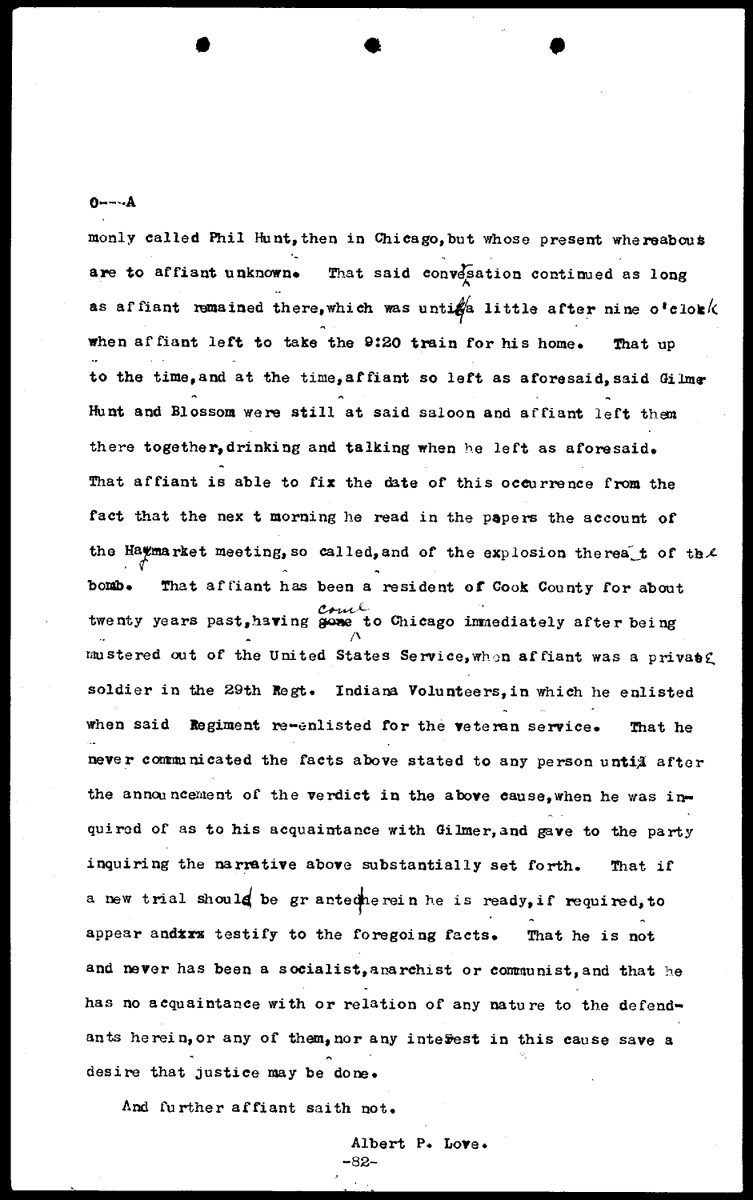 Affidavit of Albert P. Love Volume O, Page 82